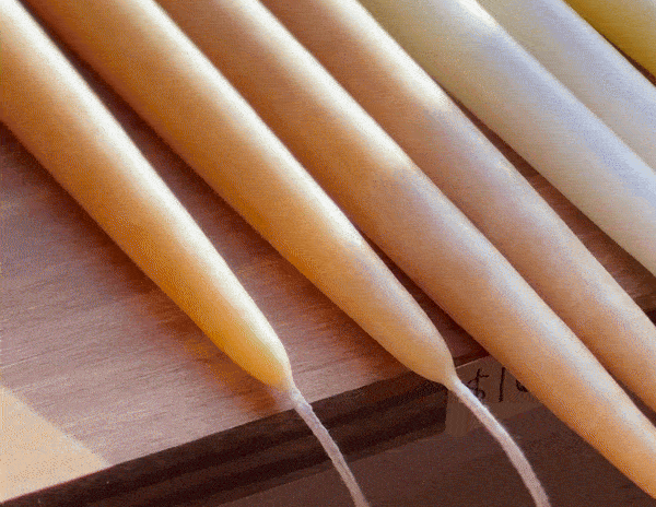 Our taper candles are all hand dipped in Maine and our fragranced candles are infused with essential oils in a custom blend for us.