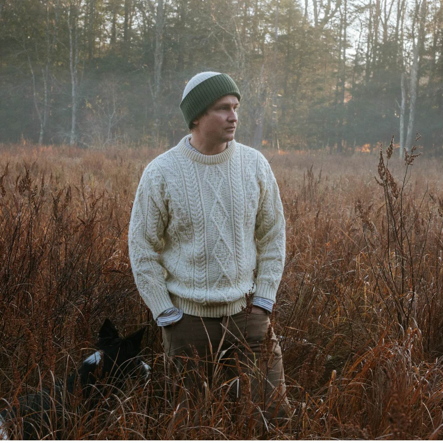 Homestedt British Wool Sweater Suede Patch Heathered Green