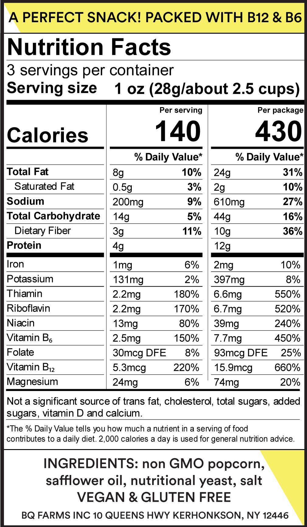 BjornQorn Classic is popped in safflower oil and seasoned with nutritional yeast and salt. It is our best seller and customers regularly tell us they are addicted to it. The best snack. Crunchy, savory, umami. Simple ingredients. Non-GMO, Vegan, Gluten Free, Allergen Free, Kosher. If thats not enough here are some takes from Bon Appetit and Epicurious: //“BjornQorn is the only packaged popcorn worth buying.” -Bon Appetit// //“BjornQorn is the best popcorn ever.” -Epicurious// So give it a shot! 12 - 3oz bags per case