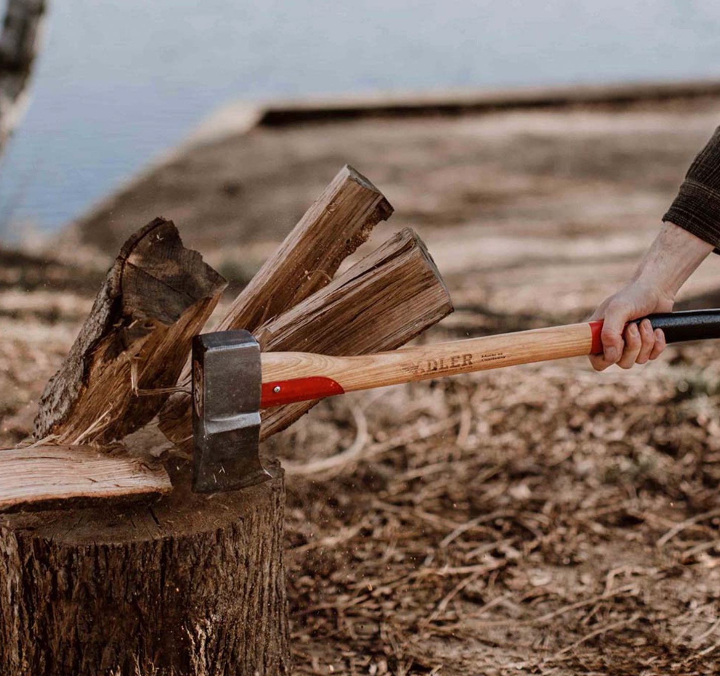 heavy-duty splitting tool incorporating a hollow-forge expansion wedge. The unique head shape effectively powers the wood apart while not clamping. Ergonomic US-hickory handle with unique anti-slip paint for better grip. There is a metal collar to project the throat of the tool. Each Super Splitter comes with a leather sheath.