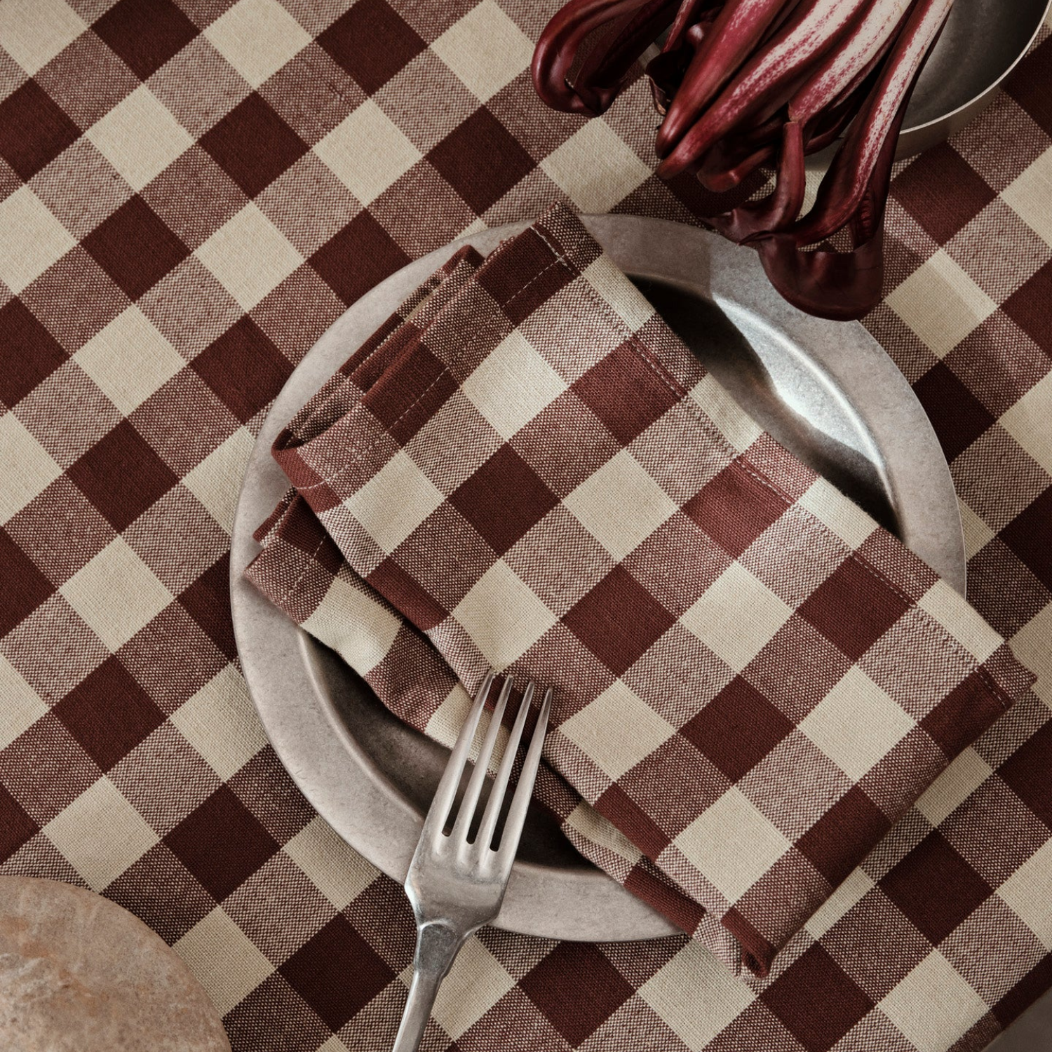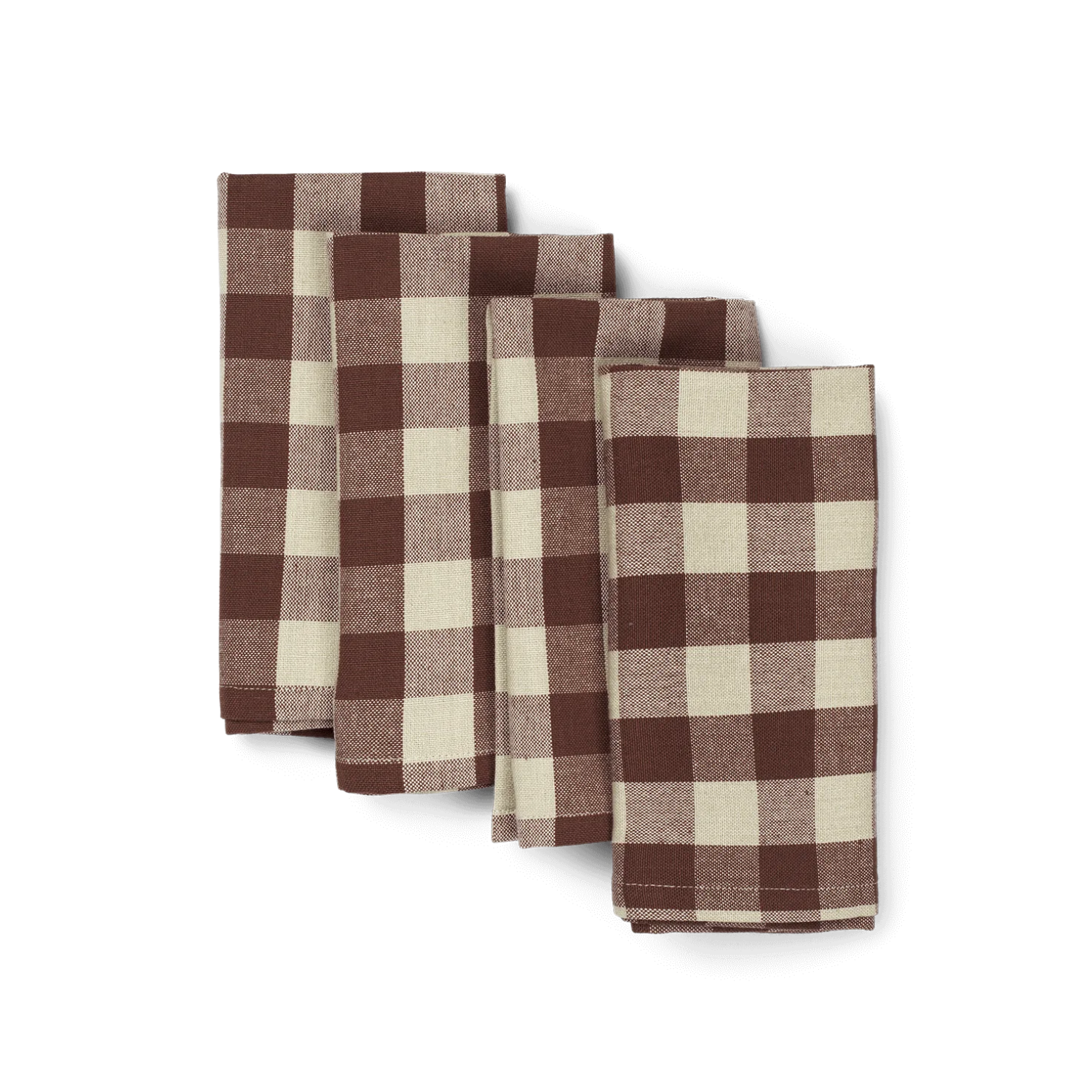 Embracing the spirit of bothys, simple shelters found in the wilderness of the Scottish Highlands, the Bothy collection features textiles with a classic check pattern. This series celebrates the peaceful lifestyle and joy of life's fundamental delights, echoing the serene essence of these highland retreats. This set of four napkins is made from GOTS certified, organic cotton and comes in a matching drawstring bag.