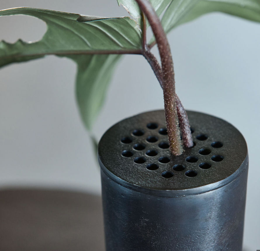 While the dark colour of the aluminium is understated, the stem holes are what takes this vase to the next level. Instead of presenting your flowers together in a bouquet, put focus on each one with Flow. The design which draws out the beauty of each flower is inspired by the Japanese art of Ikebana. Carefully choose which flowers to highlight and place the vase on a side board or on the windowsill to draw attention to it. 3.5" x 7"