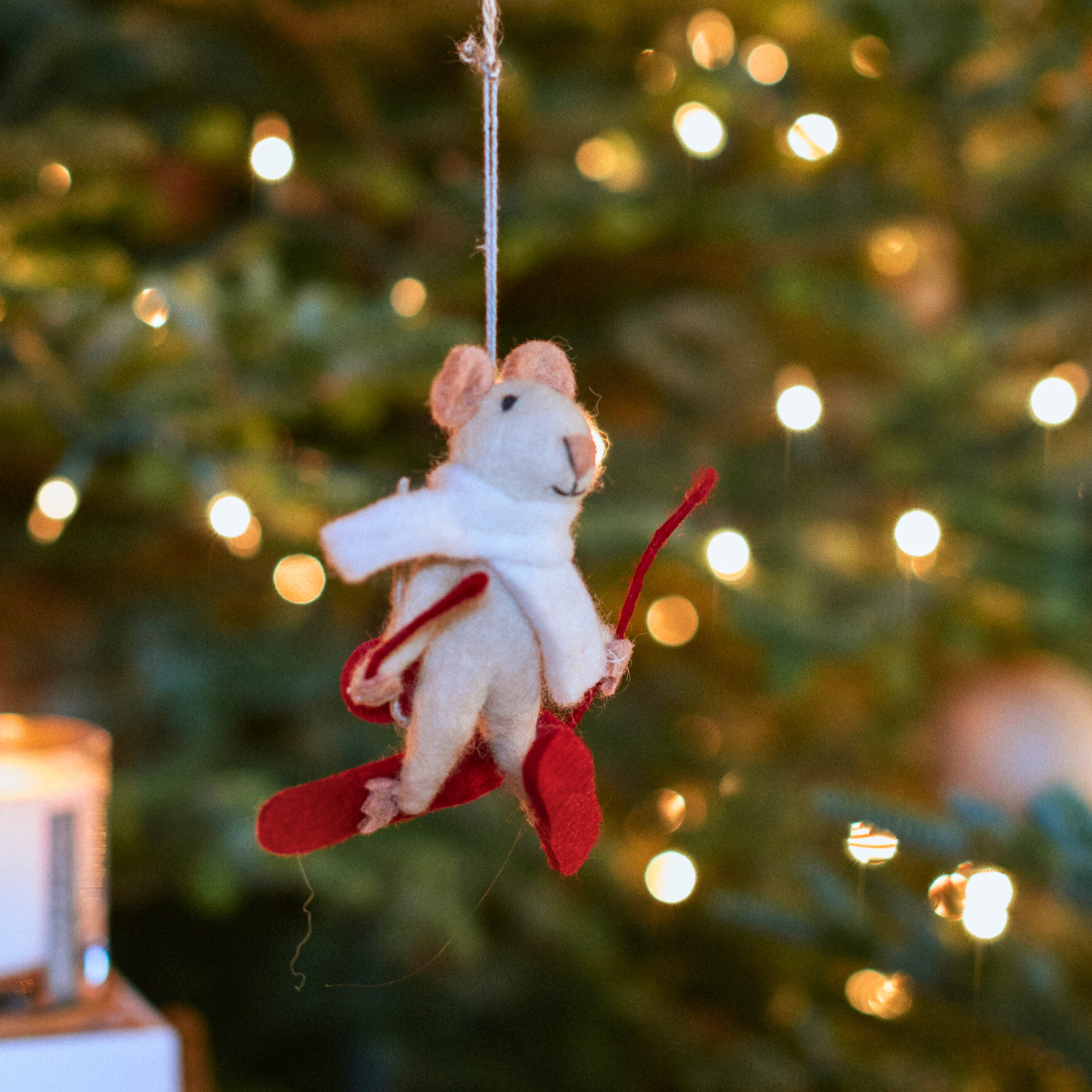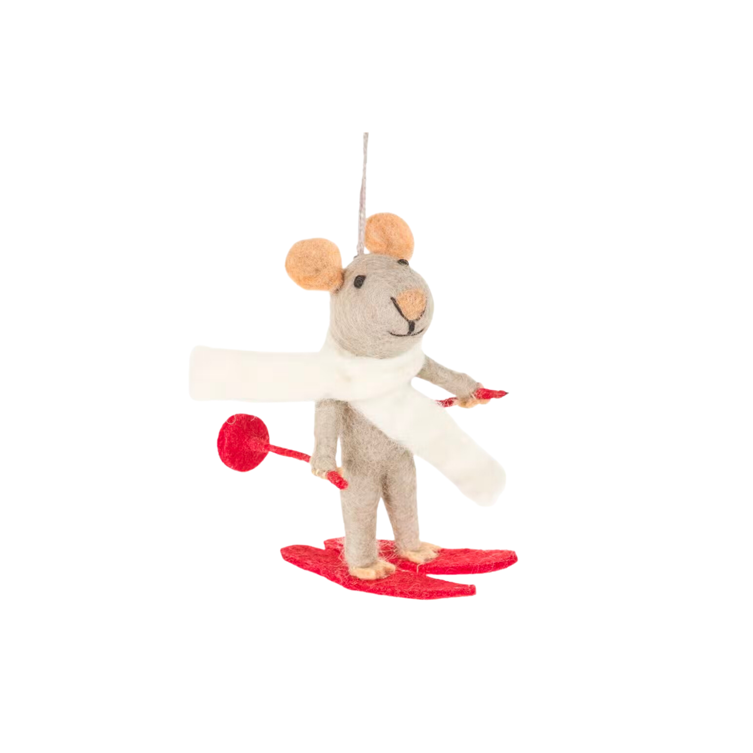 Handmade Felt Marcel the Skiing Mouse Hanging Tree Decoration