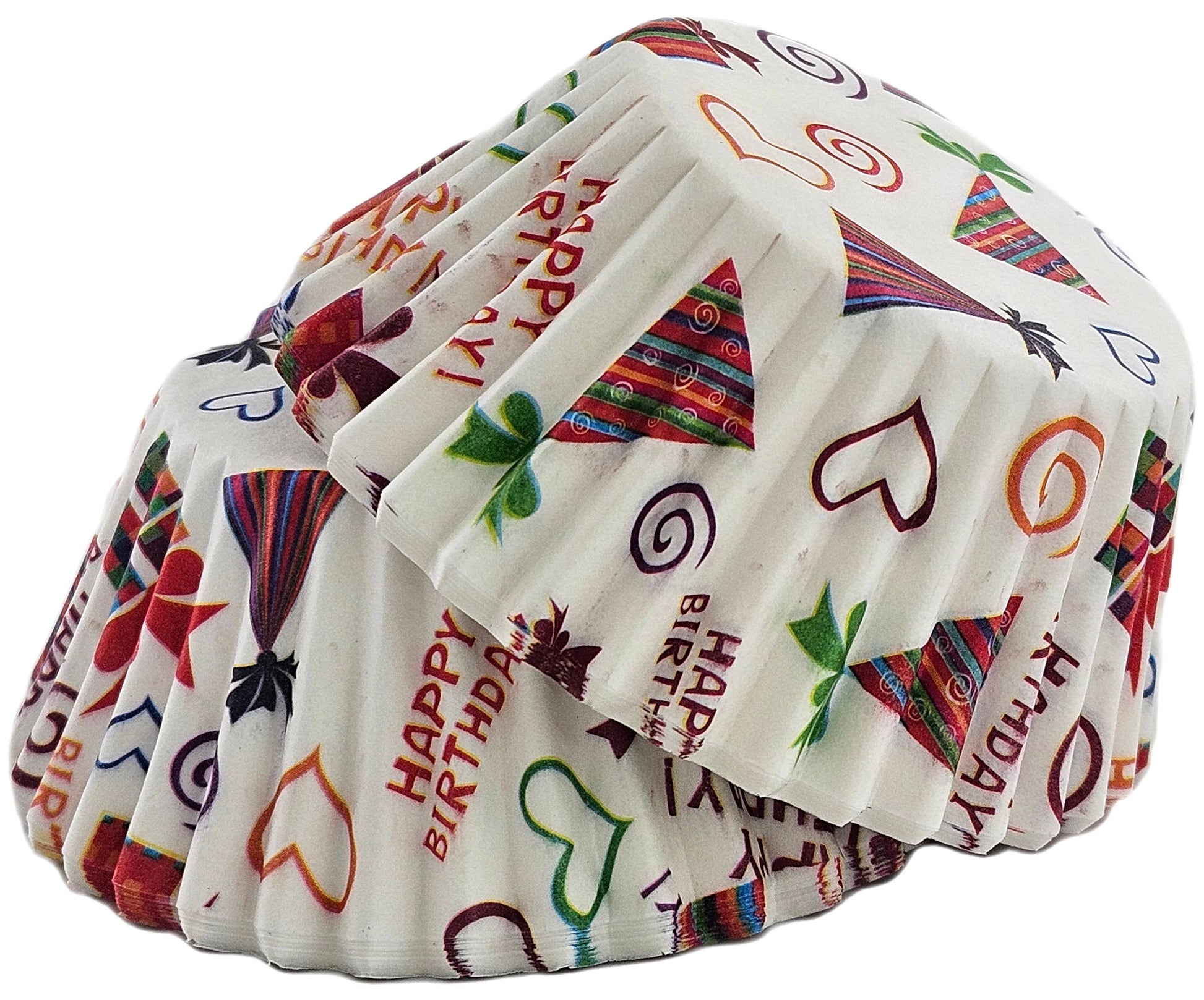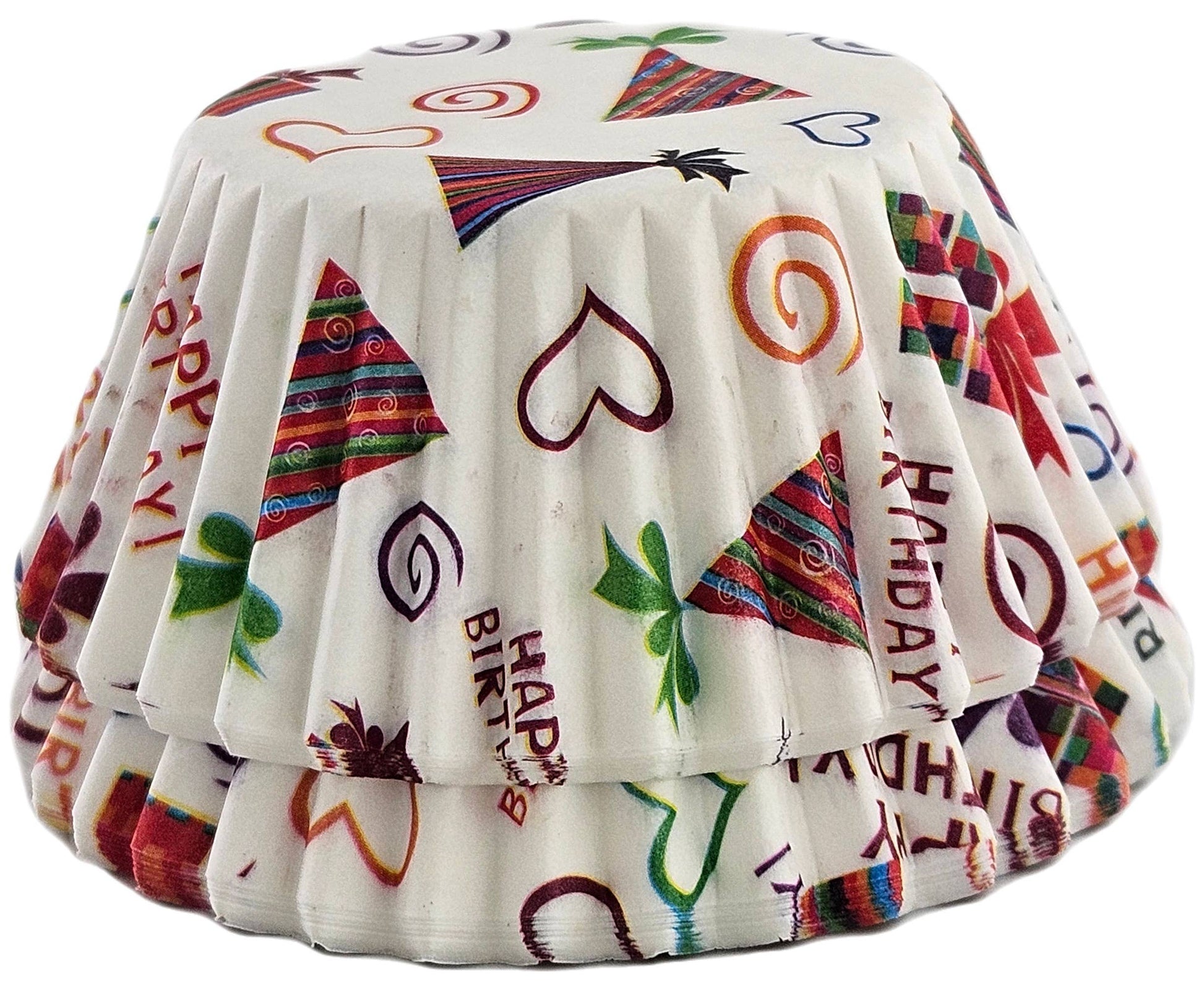 Make a birthday party extra special with these birthday themed bake cups! The colorful and birthday party design is sure to make your muffins or cupcakes stand out. Each wrapper is made of paper and is disposable for an easy clean up.