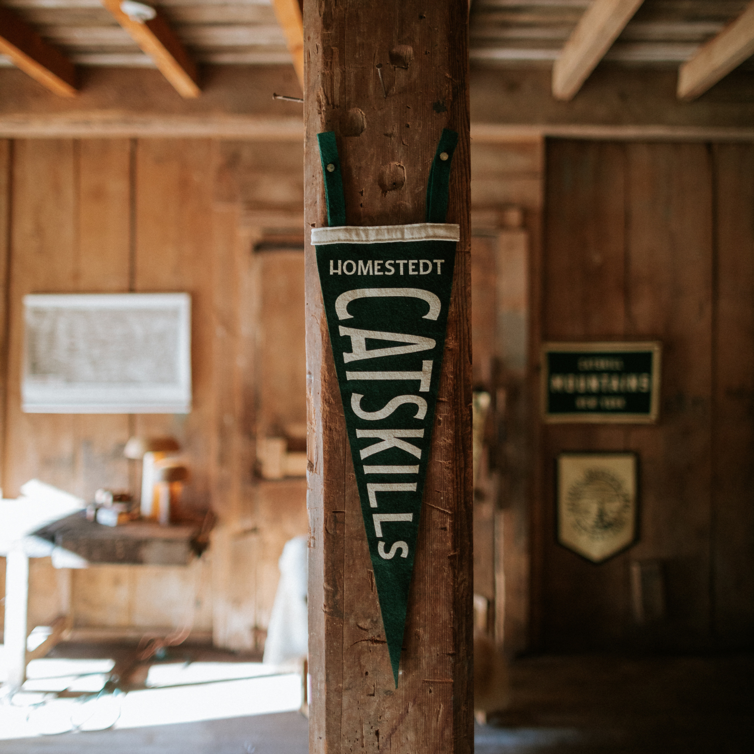 Made in Buffalo NY by the world famous Oxford Pennant Company, this Homestedt exclusive will let you show the world your love for the Catskills Mountains in all their mossy, foggy glory.Silk screened on Wool felt.
