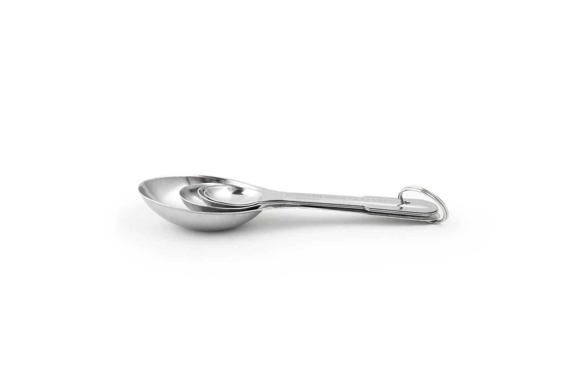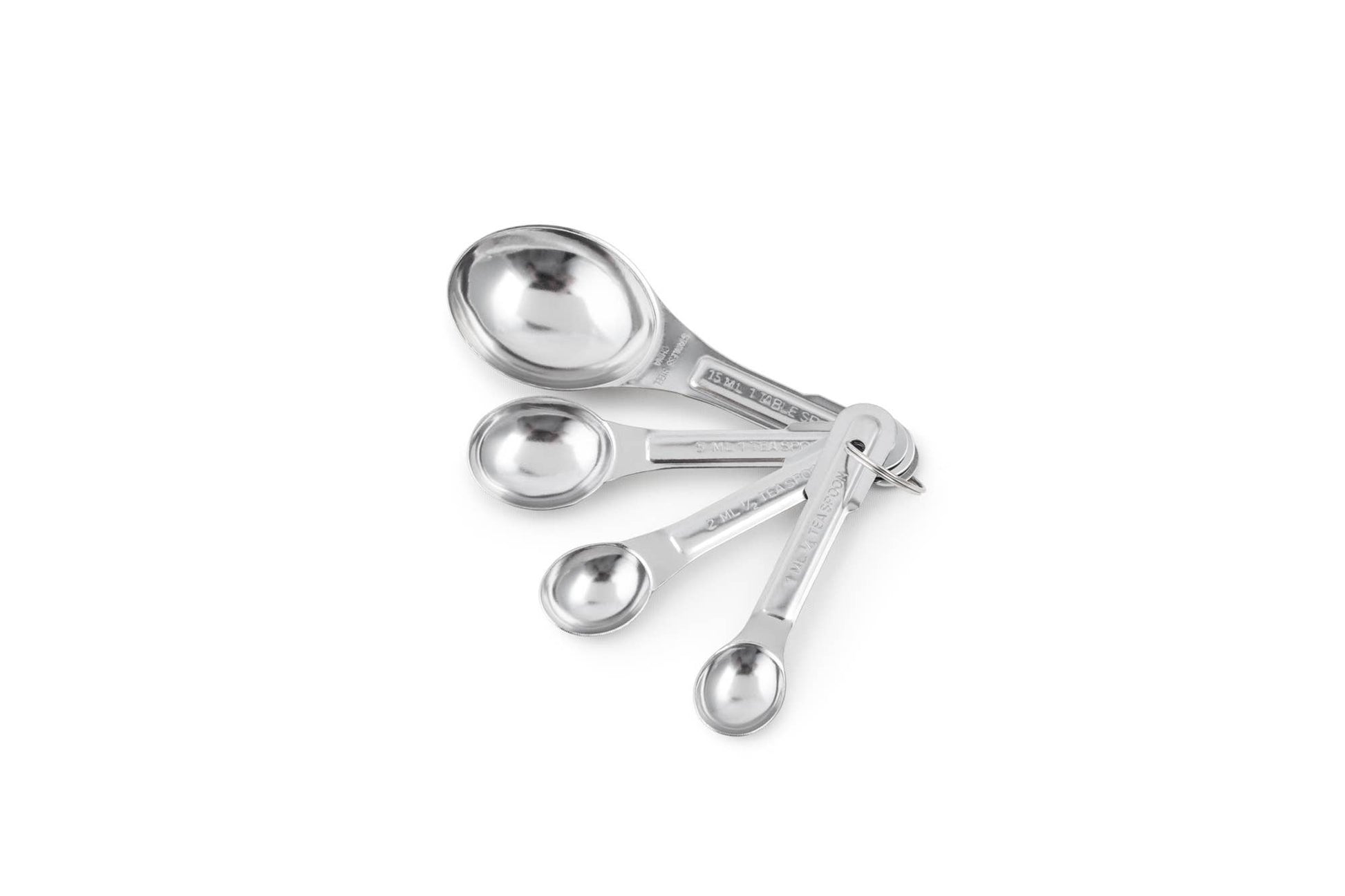Whether you are cooking or baking, precise measurements are key to a great finished product. Our stainless steel Measuring Spoon Set is an essential part of the cooking and baking process. Included measurements are 1/4 tsp, 1/2 tsp, 1 tsp, 1 tbsp., which are engraved into the metal, so they won't wash off! The spoons in this set feature a wide, flat design for easy filling and hassle-free cleaning. The set is attached on a central ring and the spoons nest inside each other to save storage space. Whether you are baking cakes, brownies, cupcakes, or preparing dinners, be sure to have this measuring spoon set nearby!