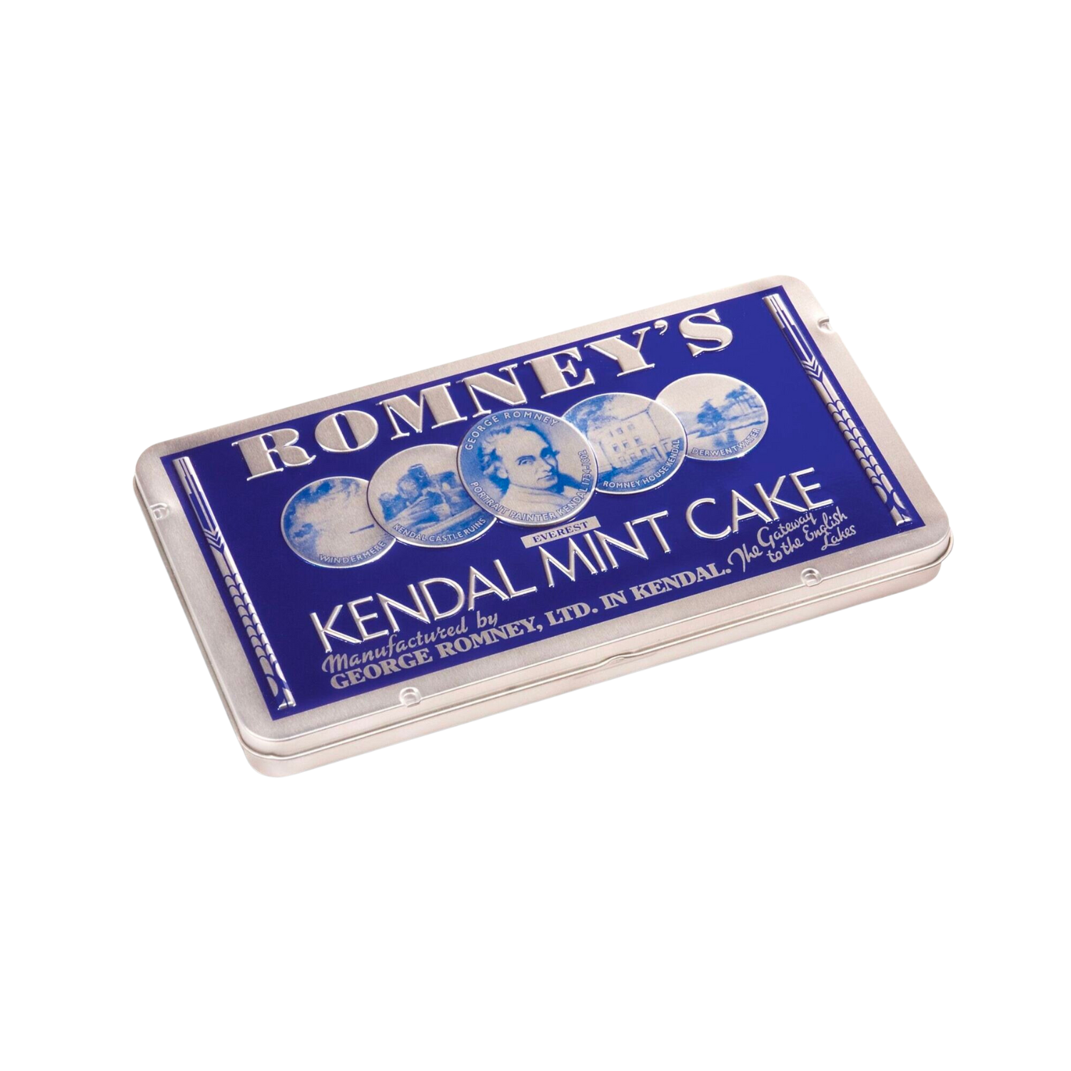 A handy sized pocket tin filled with a 170g White Kendal Mint Cake.
