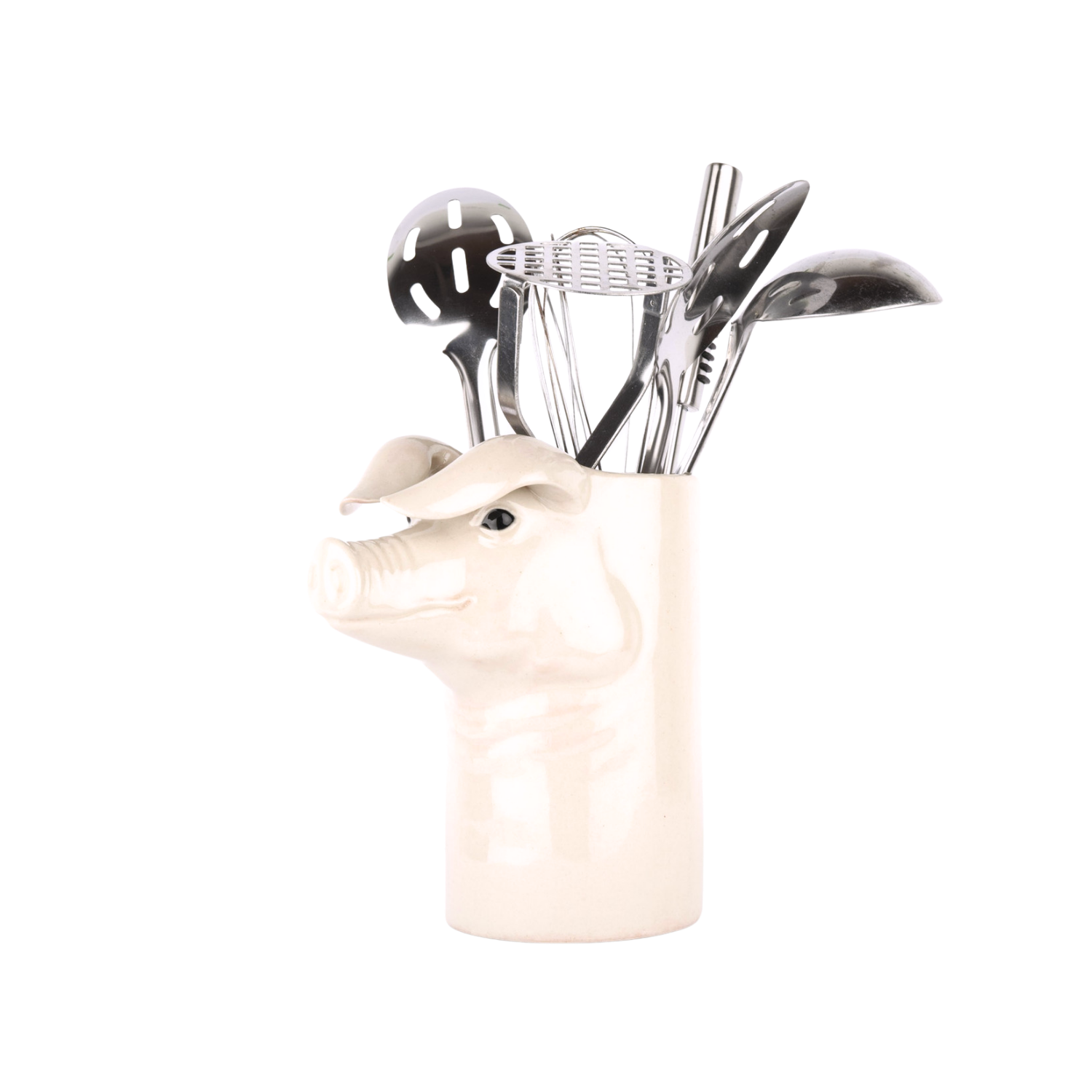 Pig utensil pot. Hand Painted Stoneware. Dishwasher Safe.
