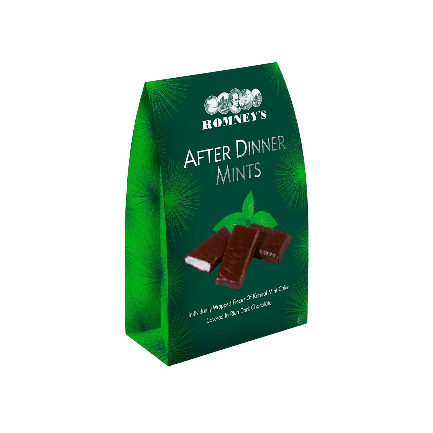 These After Dinner Mints are made using the original white Kendall Mint Cake and covered in rich, dark Belgian chocolate.