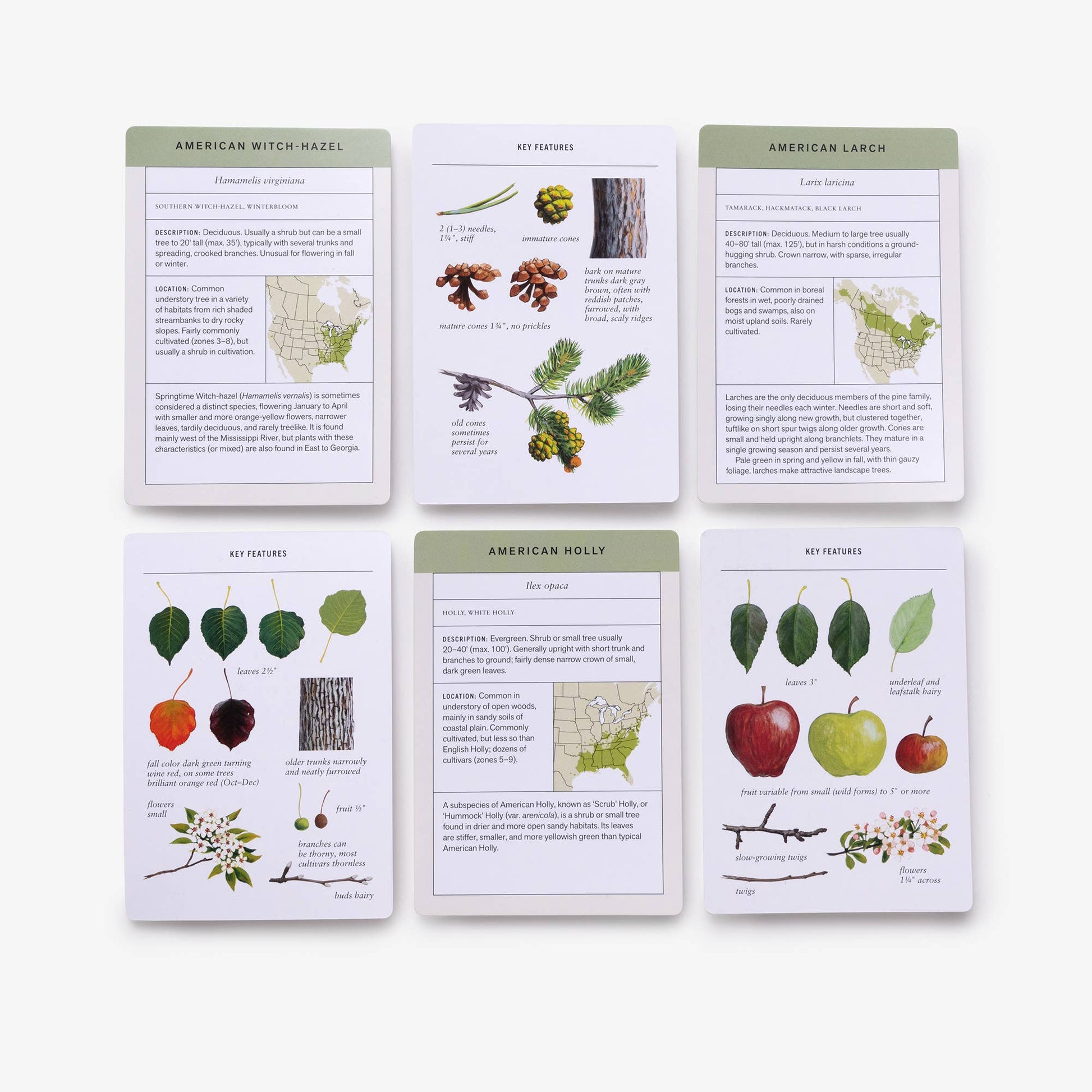 With full-color paintings and descriptive text from The Sibley Guide to Trees of North America, this set includes 100 easy-to-reference flashcards housed in one handsome pull-drawer gift box, plus a title card and information card for general identification success. Each card features • Precise illustrations showing the tree’s bark, leaves, twigs, buds, fruit, and flowers • The common and Latin names for each tree • General description for easy identification • A map with notes about common areas where each tree can be found. With the cards organized by region, you'll travel from the Scotch Pine in the Northeast to the Joshua Tree in the Southwest and discover the beautiful trees of North America.