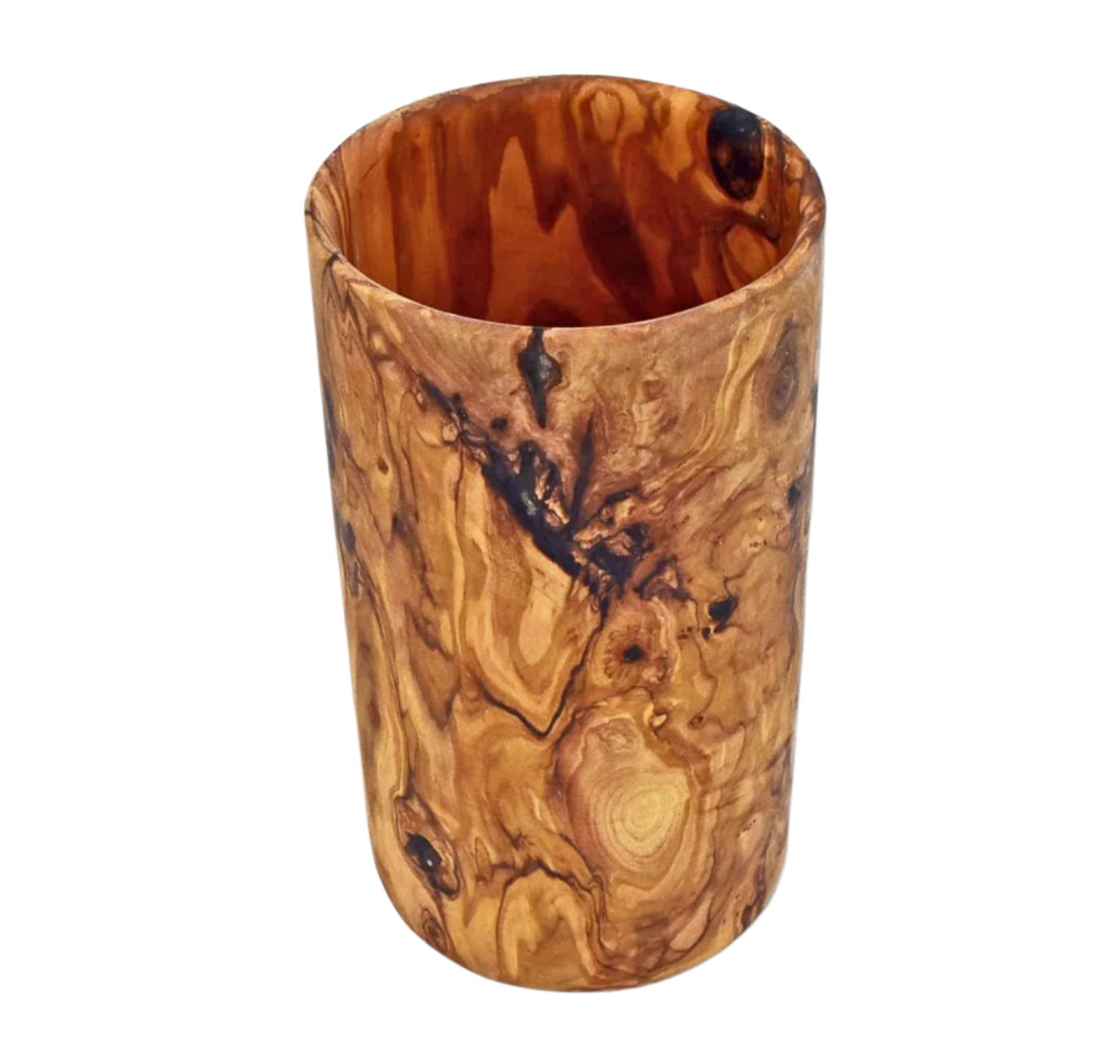 Olive wood utensil holder.Height about 15cm, outer diameter (top) about 9.5cm.