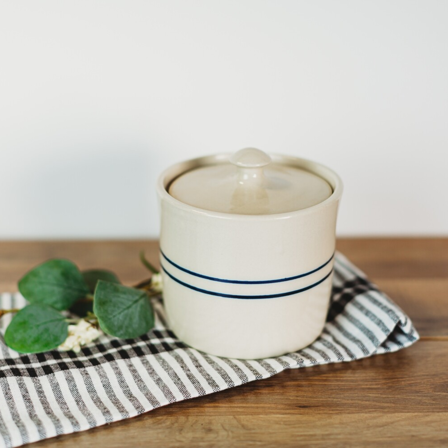 Handmade in the USA. Stoneware butter bowl holds a small tub of butter. Keeps butter preserved at room temperature. Hand turned, dishwasher safe. Made in the USA. Food safe, no lead or cadmium.