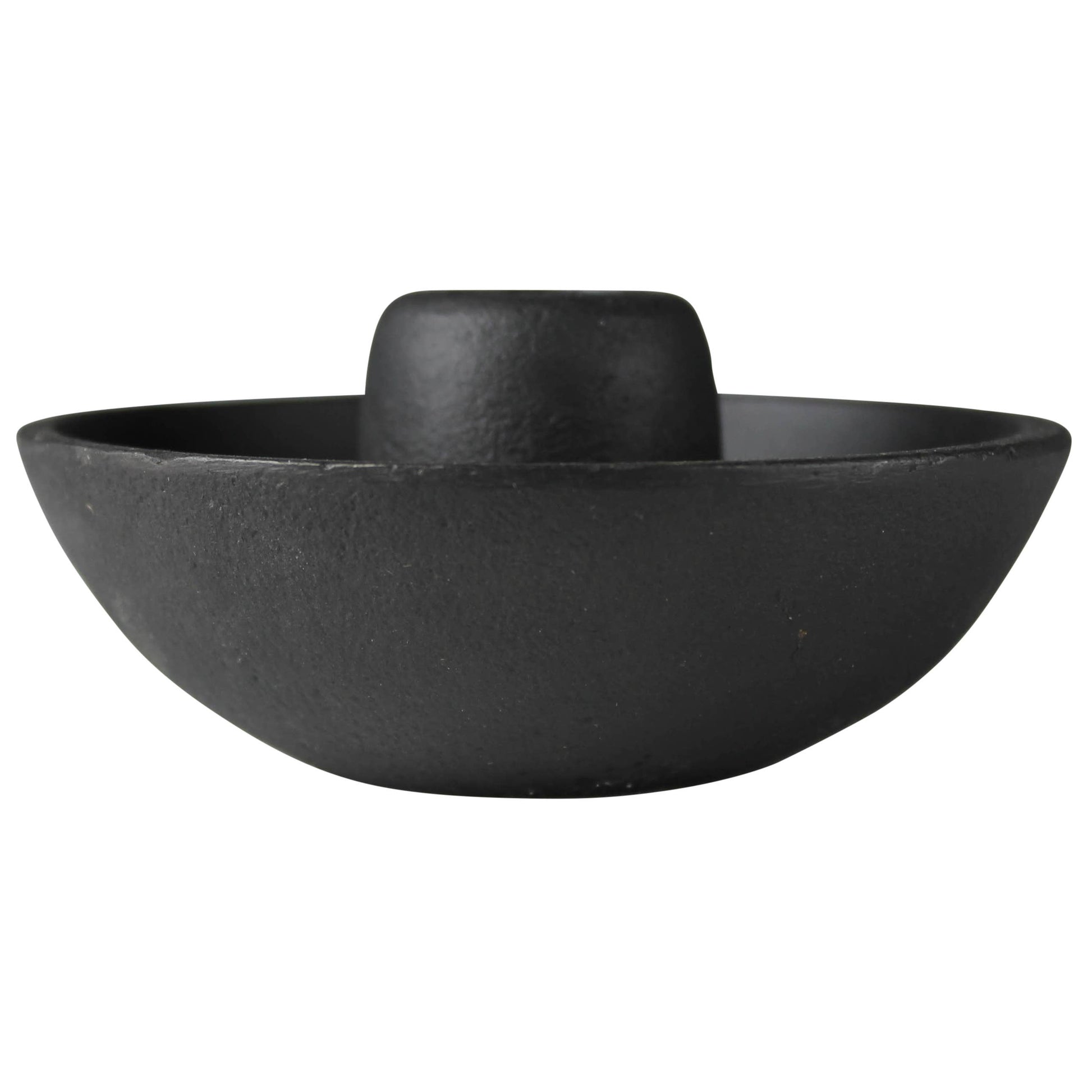 Cast in iron this taper holder with a deep bowl is strong in character when solo and beautiful when amassed. Use a glass hurricane for extra protection when used outdoors.
