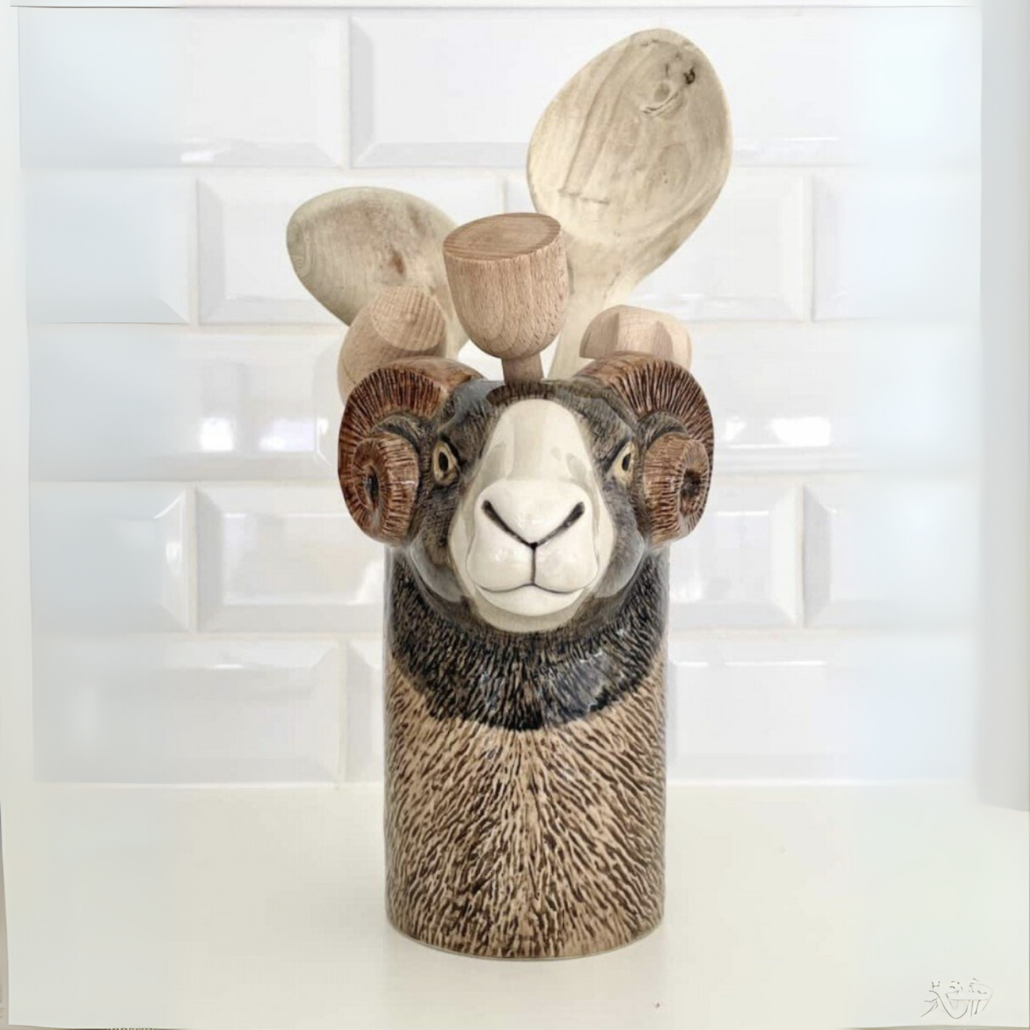 Swaledale Sheep utensil pot. Hand Painted Stoneware. Dishwasher Safe.